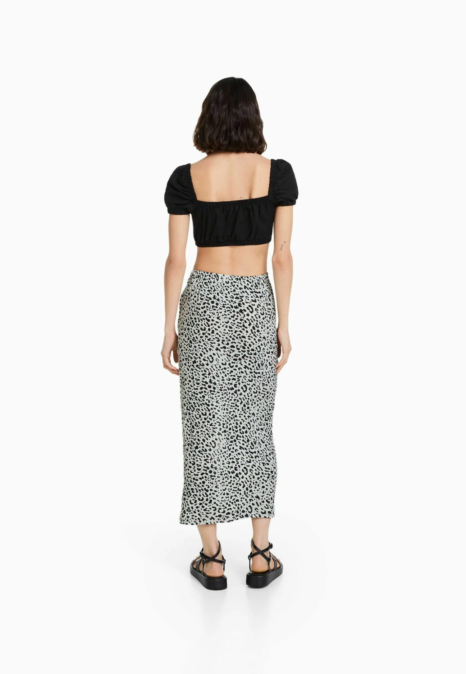 BERSHKA Printed – Gonna Lunga – Black