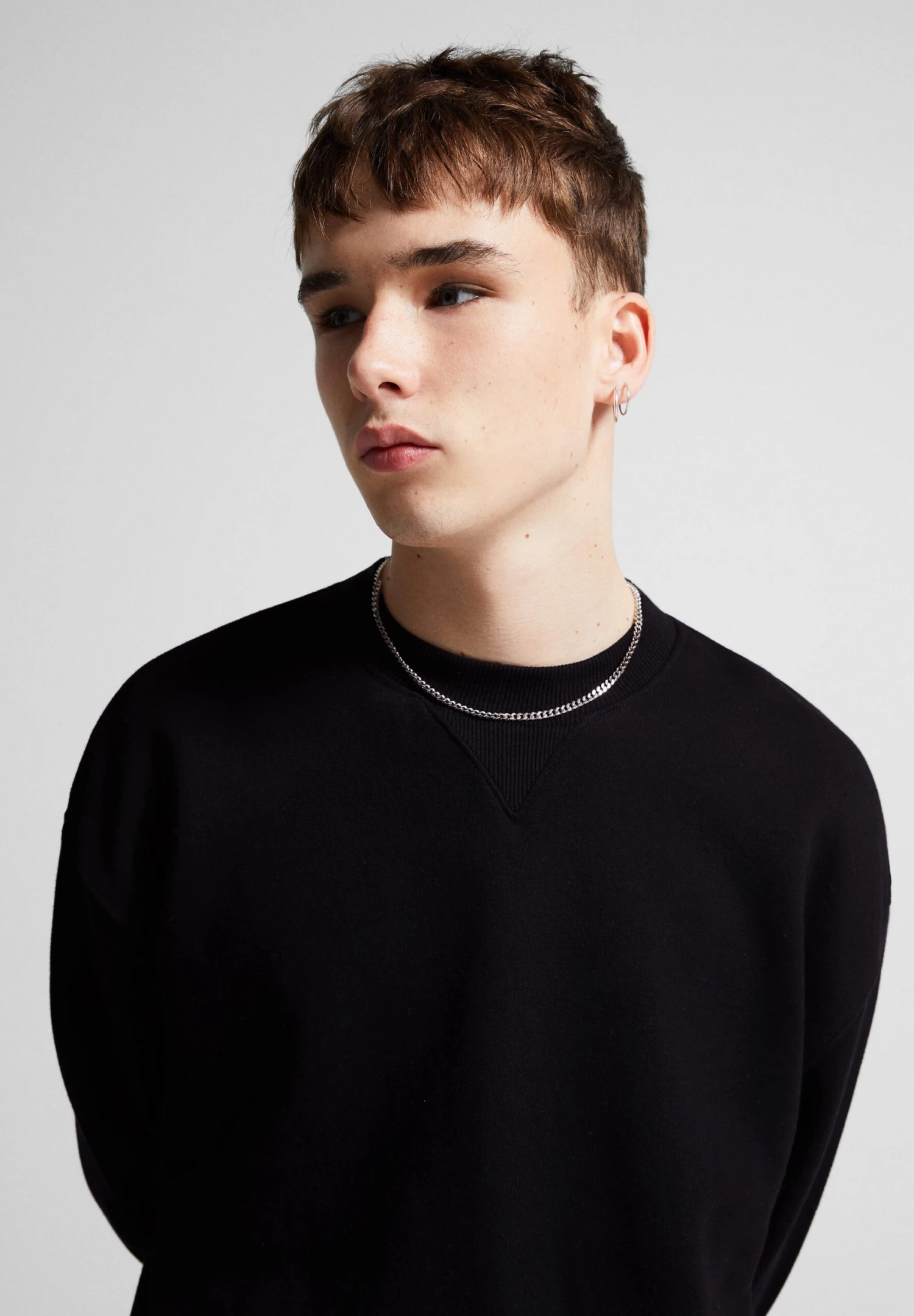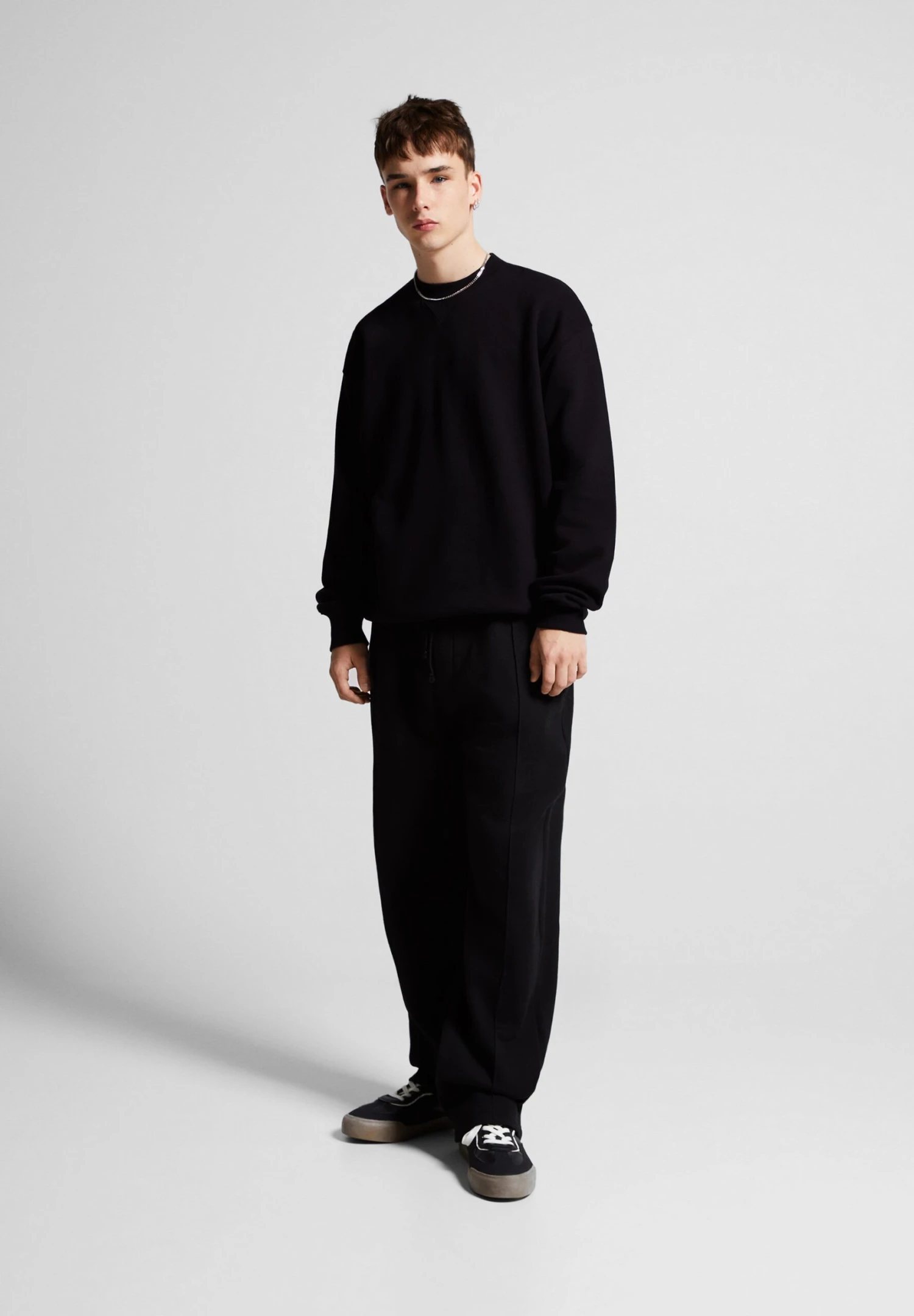 BERSHKA Round Neck – Felpa – Black