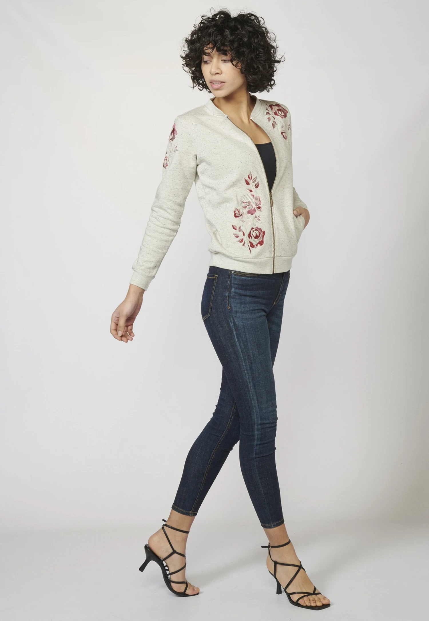 Koroshi Felpa Con ZipGris Donna Felpe KOL21J00F-C11