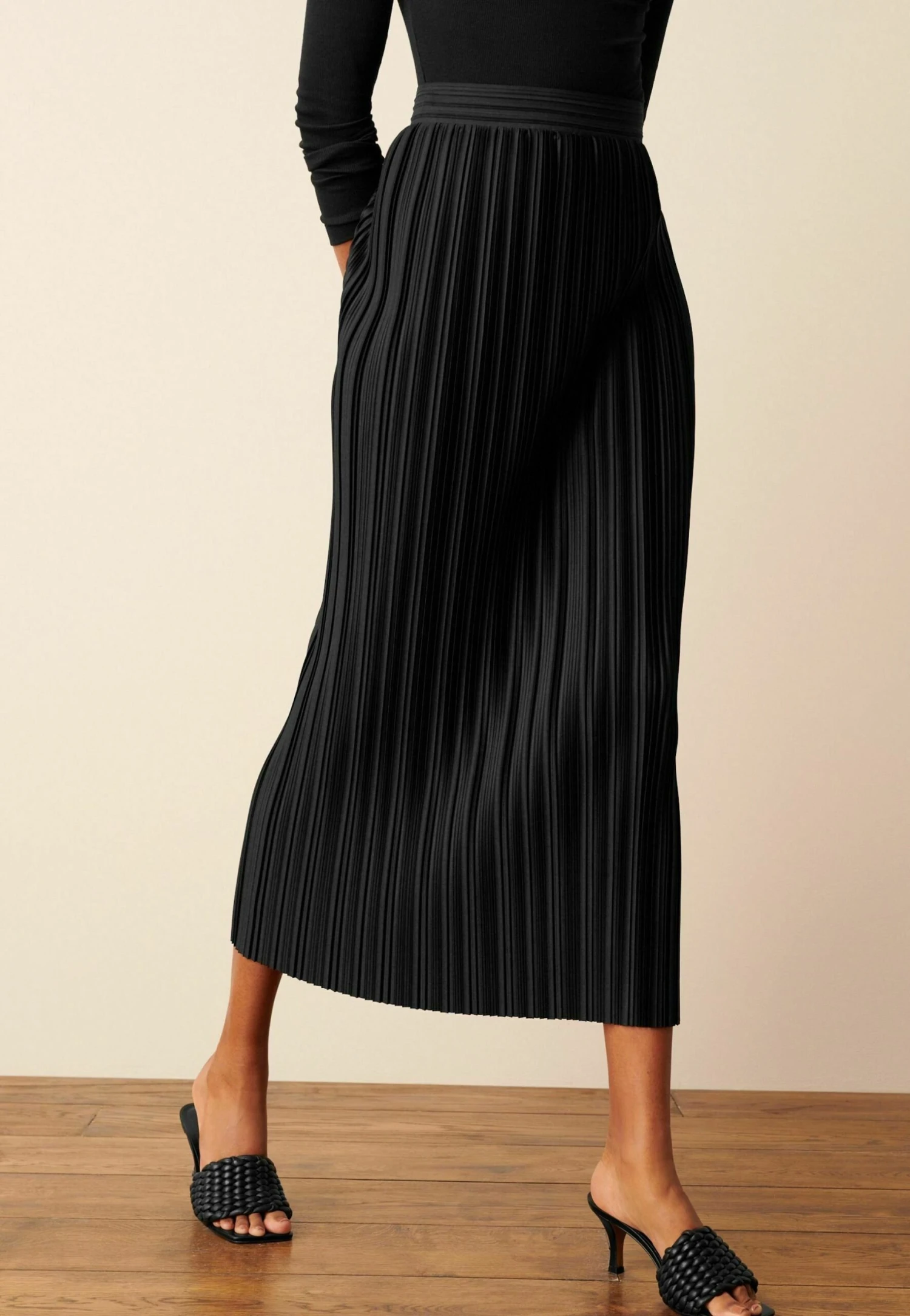 Next Plisse Midi SkirtGonna A PiegheBlack Donna Gonne NX321B0NY-Q11