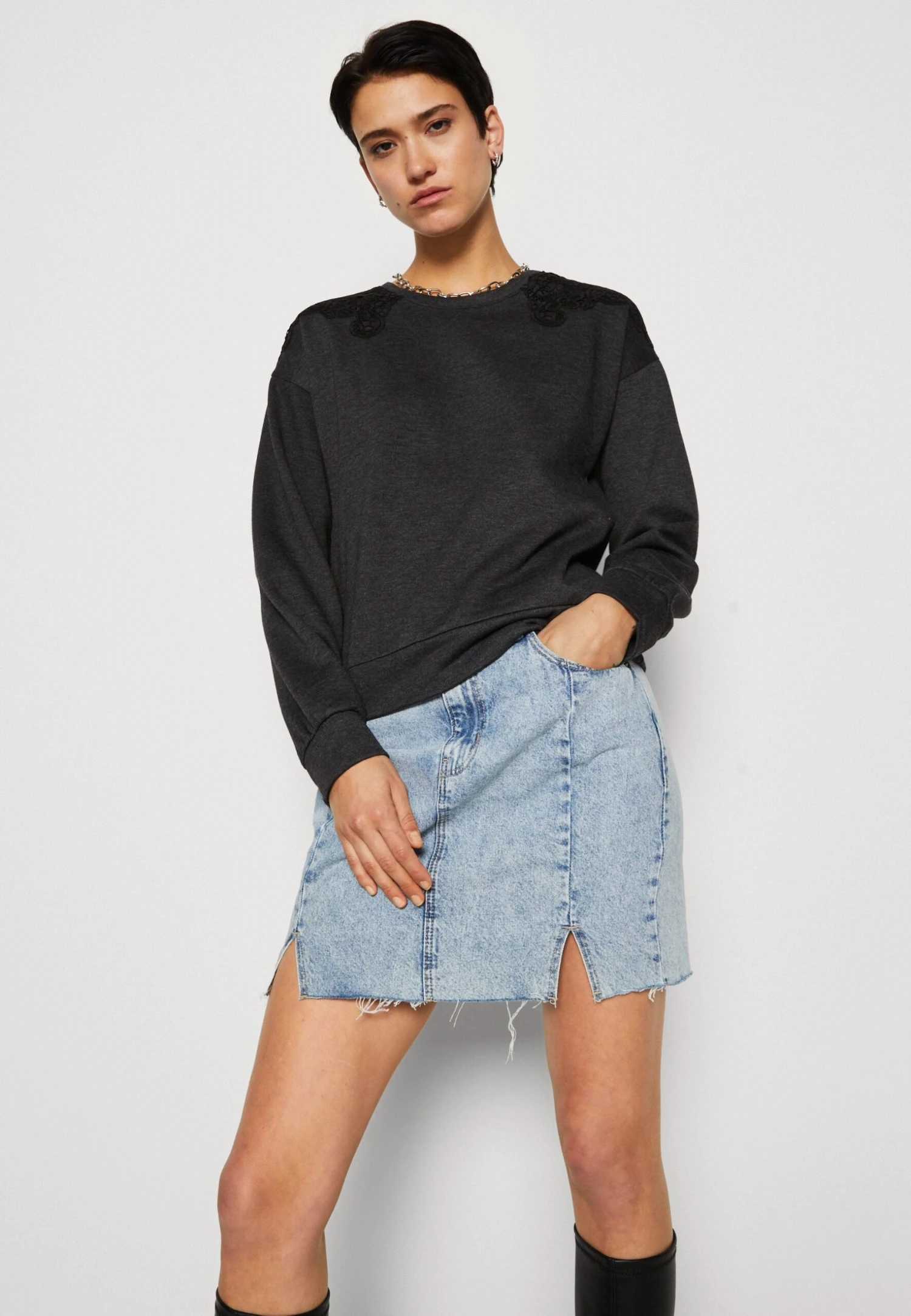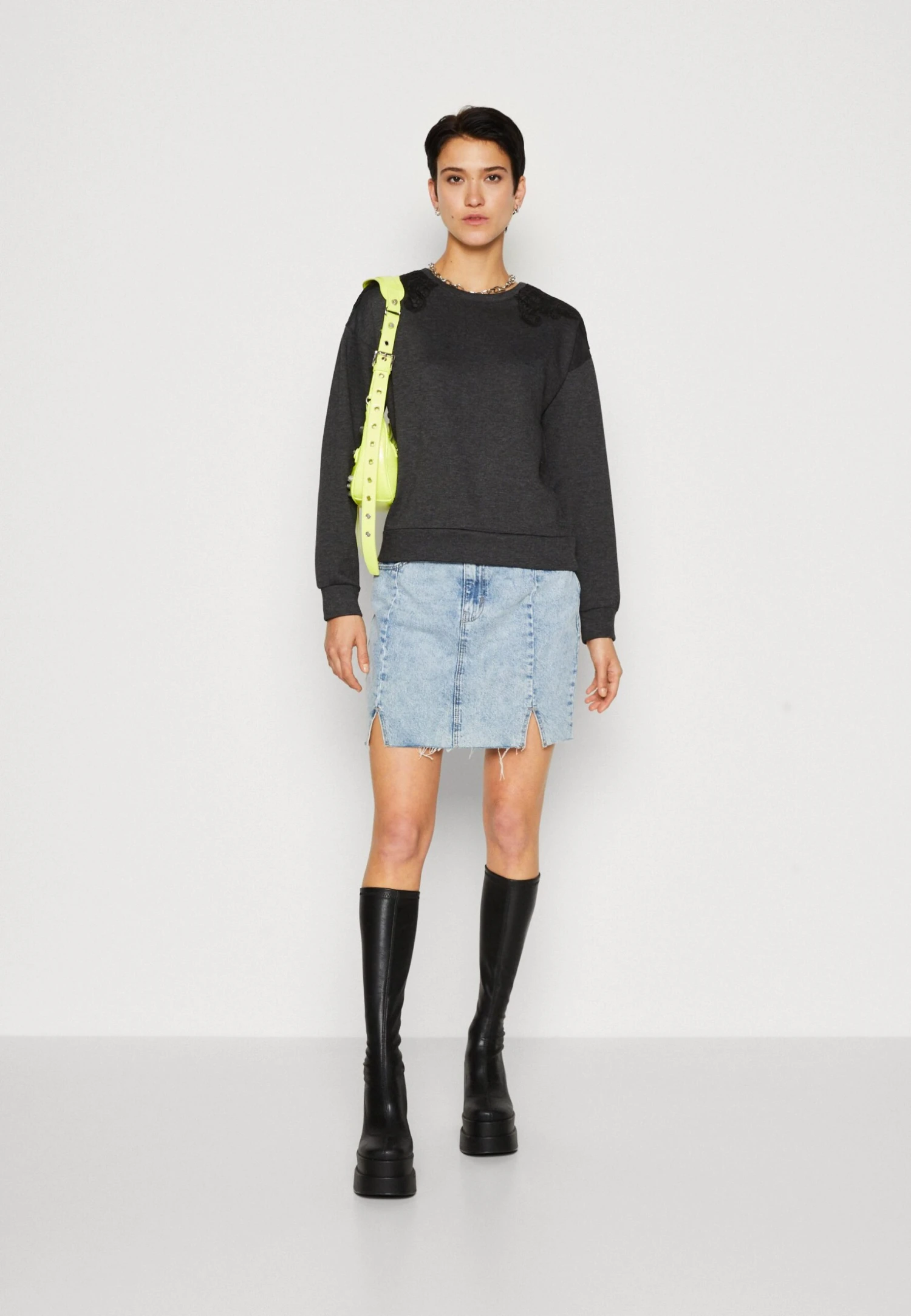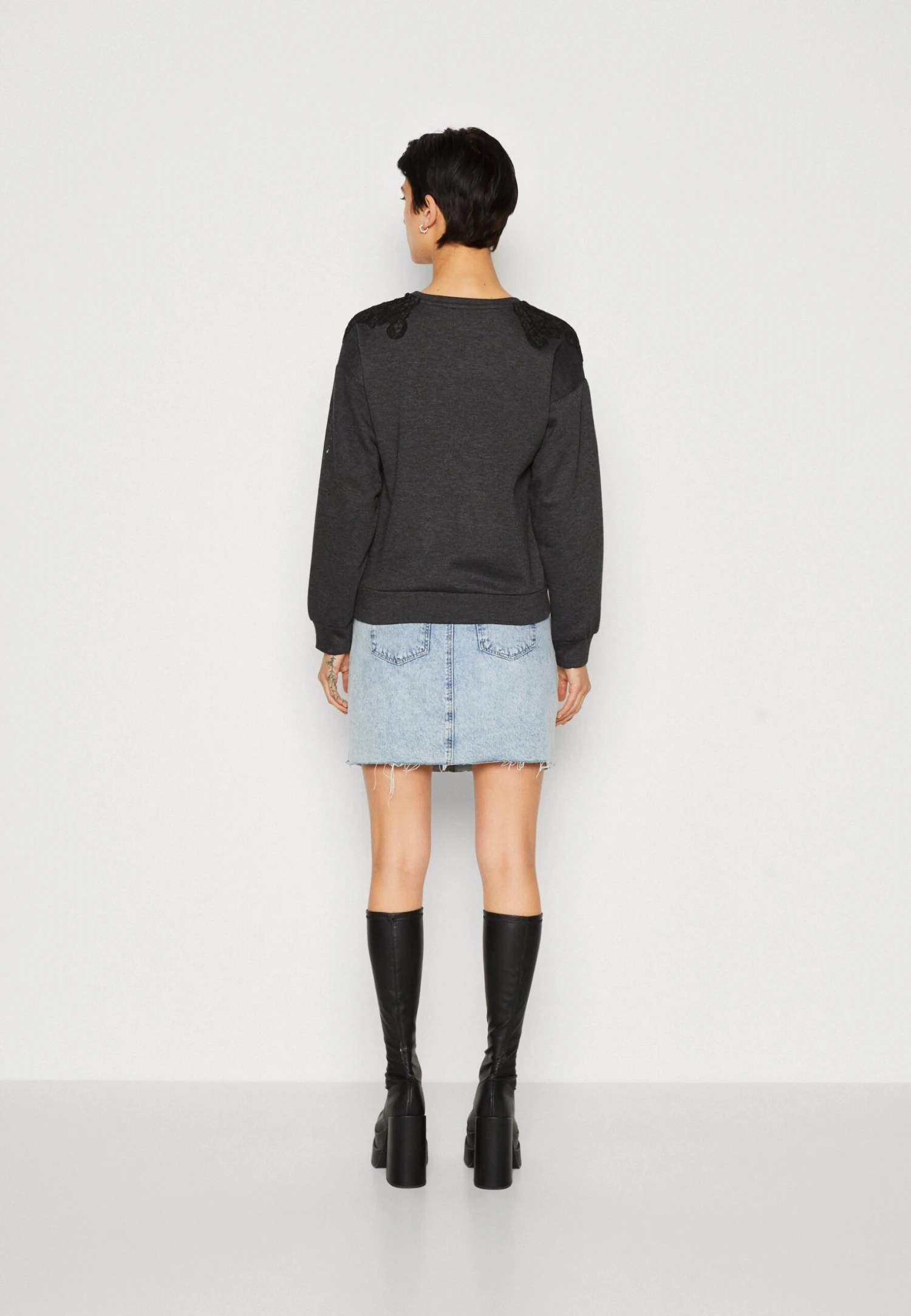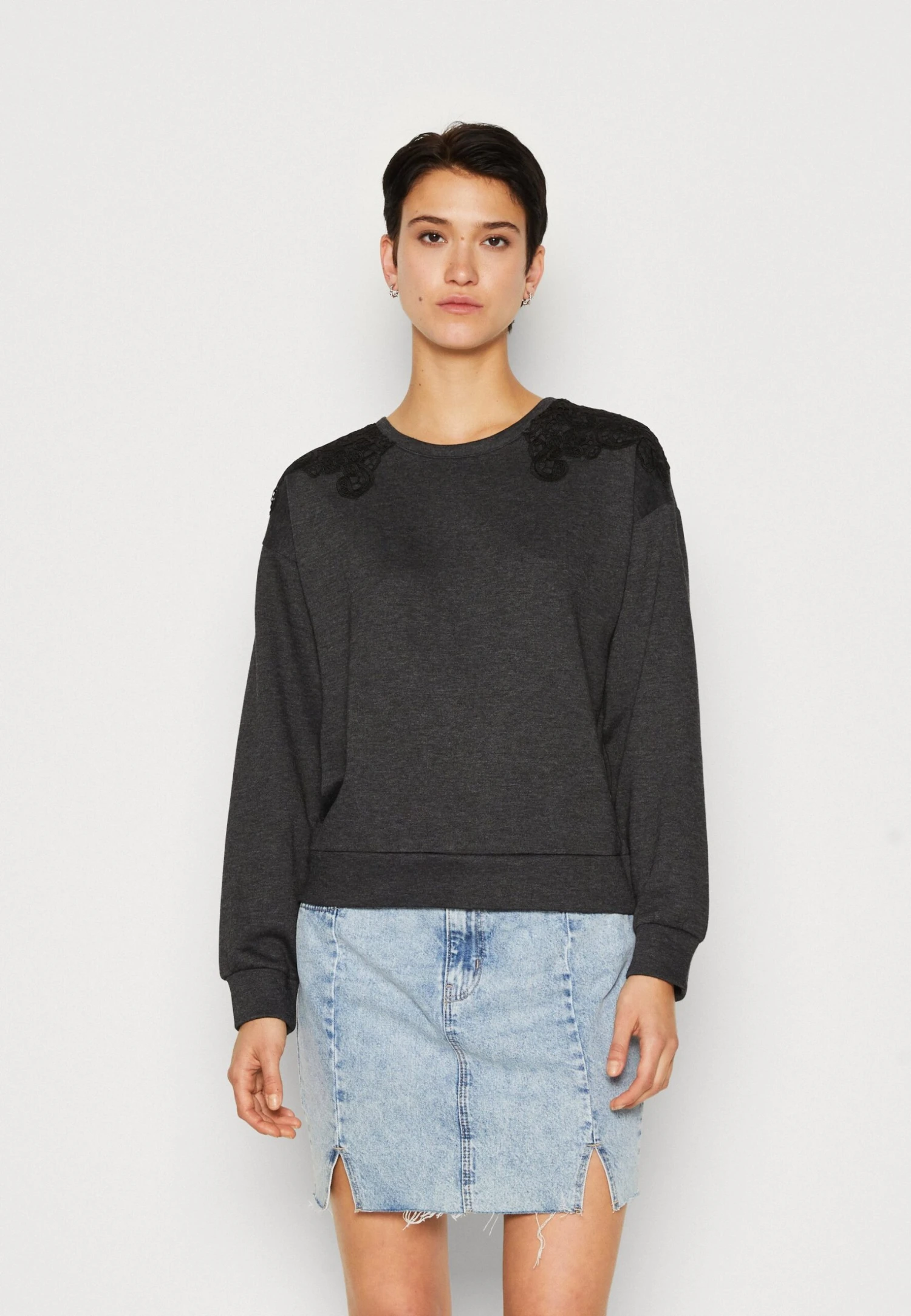 ONLY Onlgina O Neck FelpaDark Grey Melange/Black Donna Felpe ON321J113-C11
