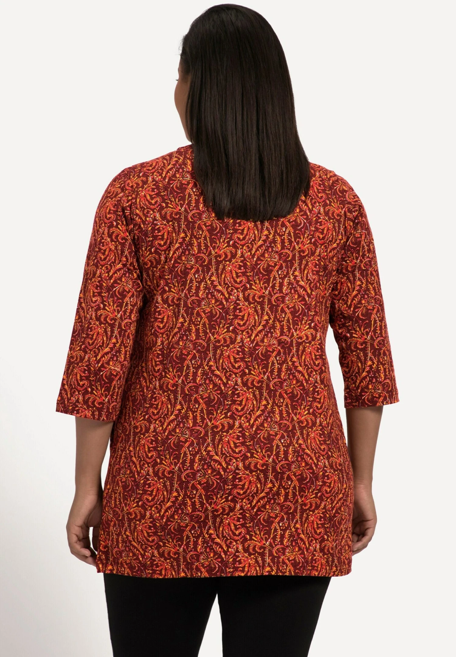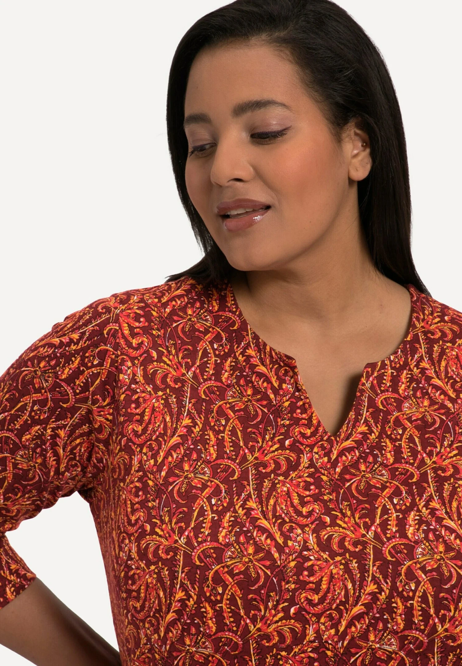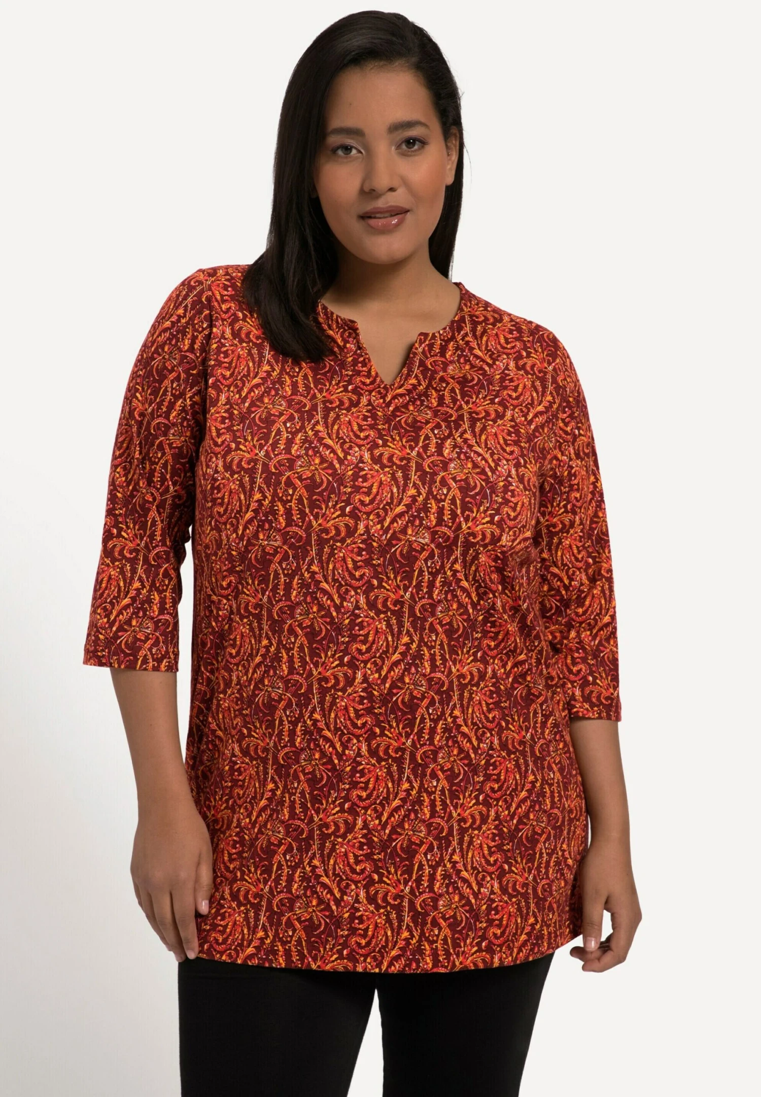 Ulla Popken À Col Tunisien Et Manches 3/4Maglietta A Manica LungaCarmin Donna T-shirt E Top UP121D2GV-G11