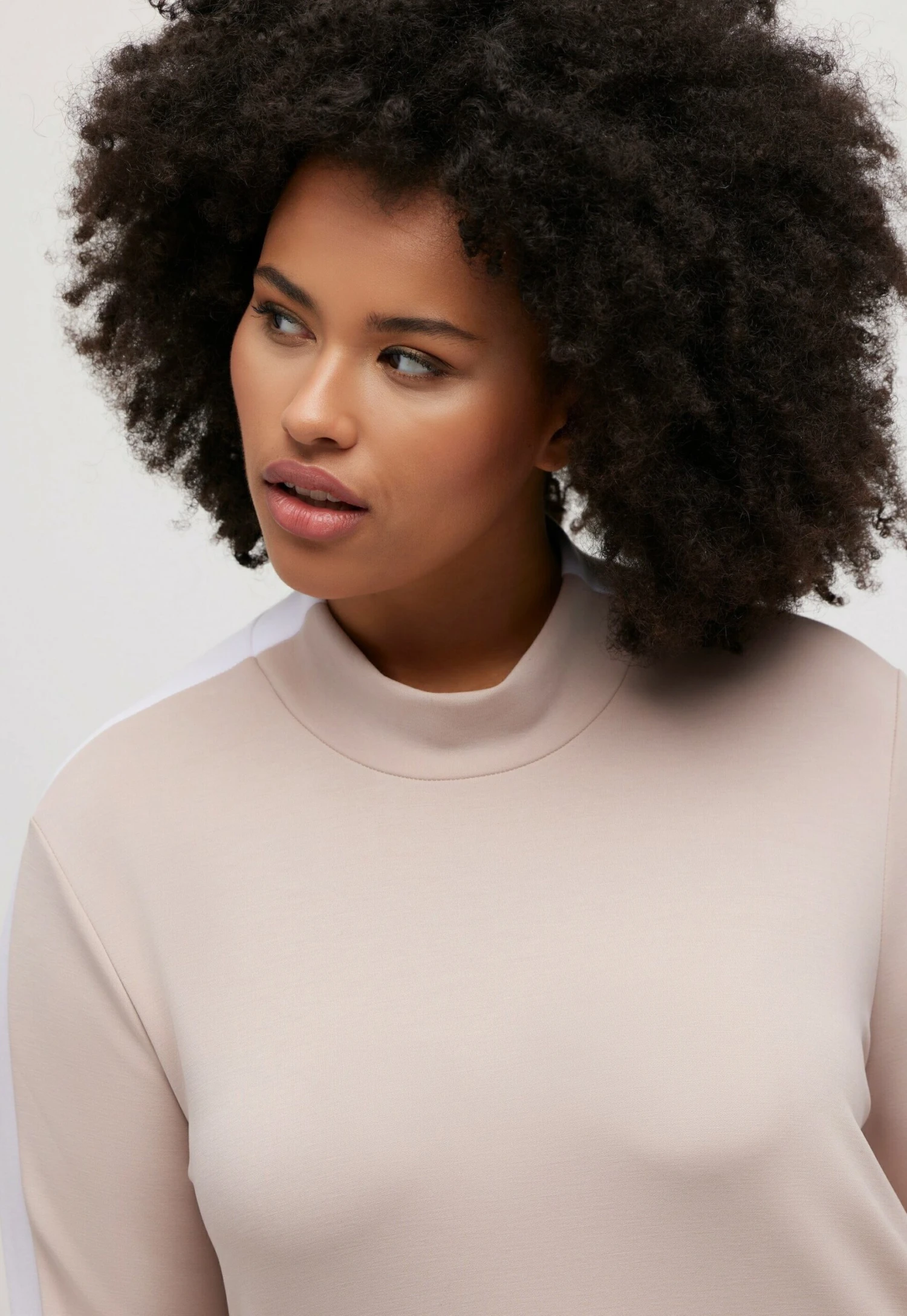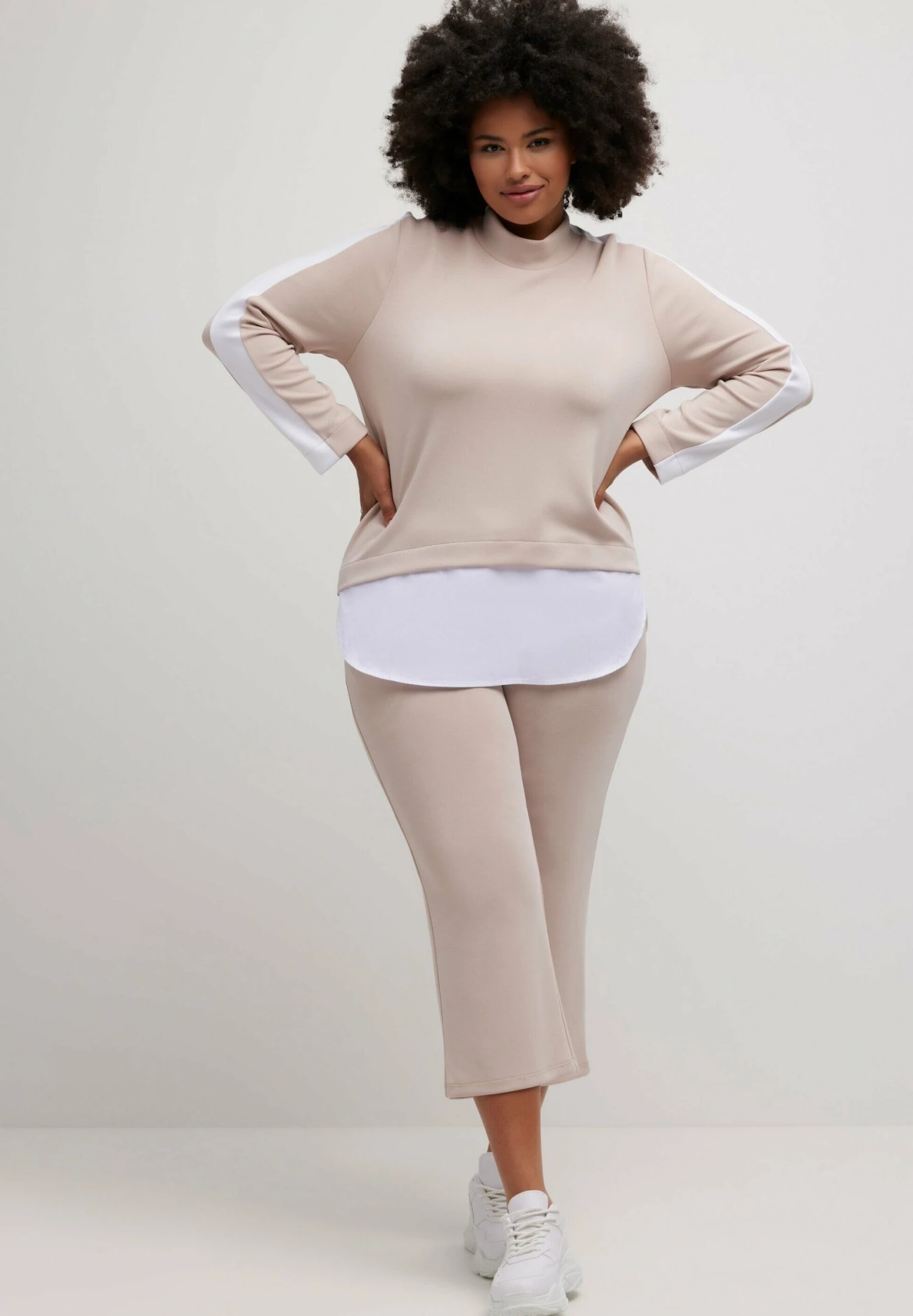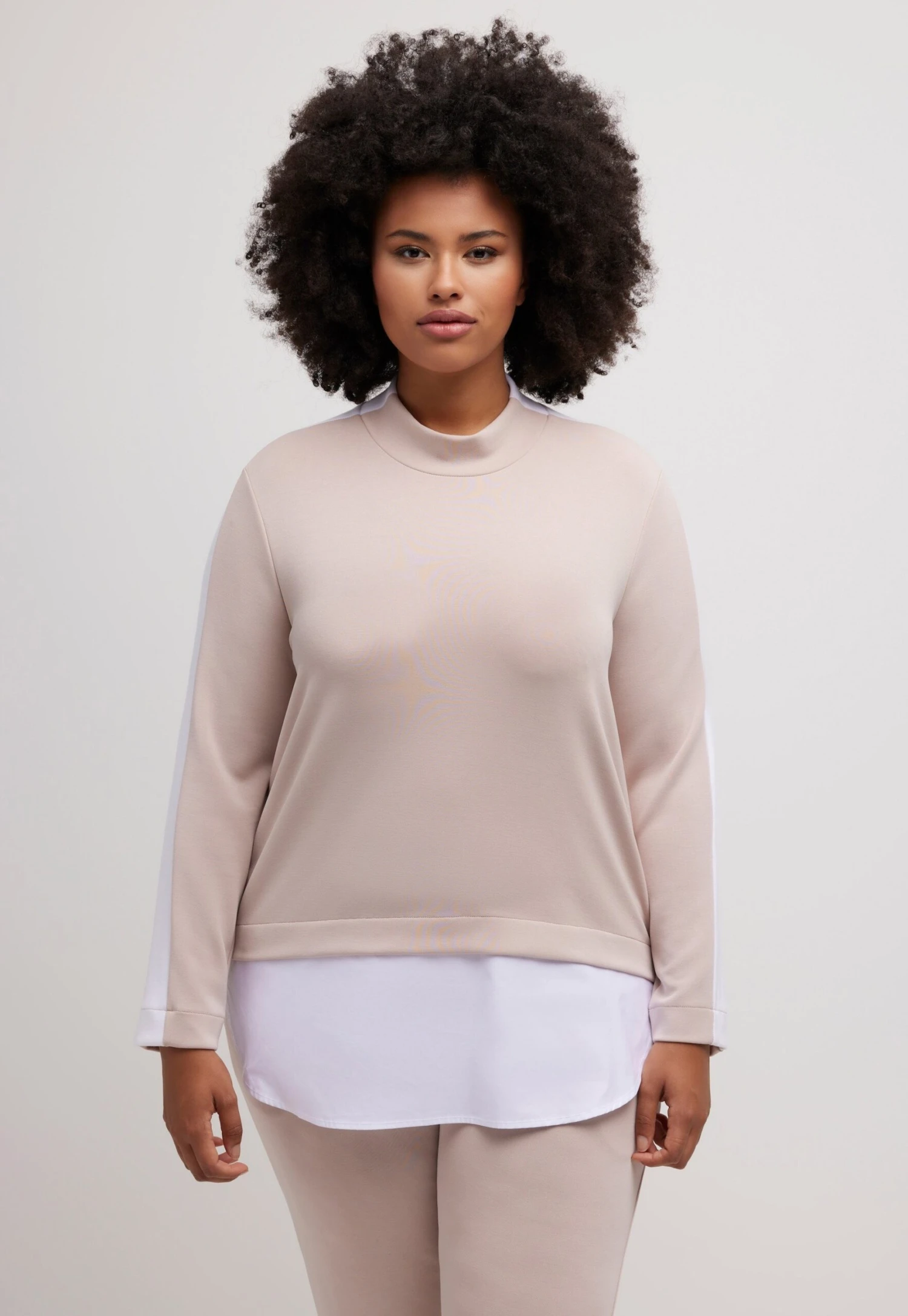Ulla Popken Layered Look Stripe Detail StretchFelpaDark Putty Donna Felpe UP121J0G7-B11